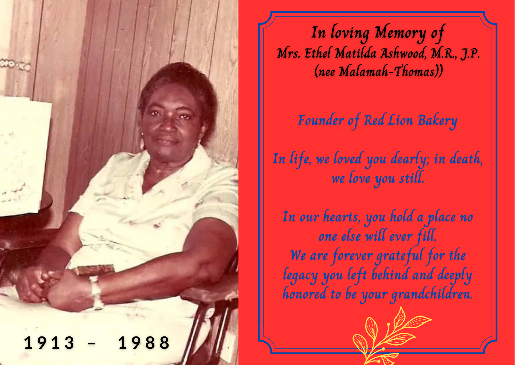 We are forever grateful for the legacy you left behind and deeply honored to be your grandchildren.