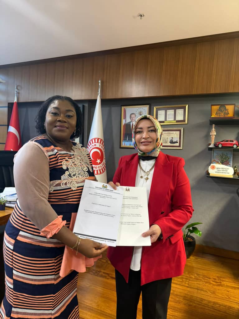 Grand National Assembly, Ankara, Türkiye, October 14, 2025 – The Sierra Leone Ambassador to Türkiye, Her Excellency Francess Virginia Anderson, PhD, recently visited Honorable Çiğdem Erdoğan, Chairperson of the Parliamentary Commission for Equal Opportunities for Women and Men, to discuss potential collaborations with Sierra Leone’s Parliamentary Female Caucus.