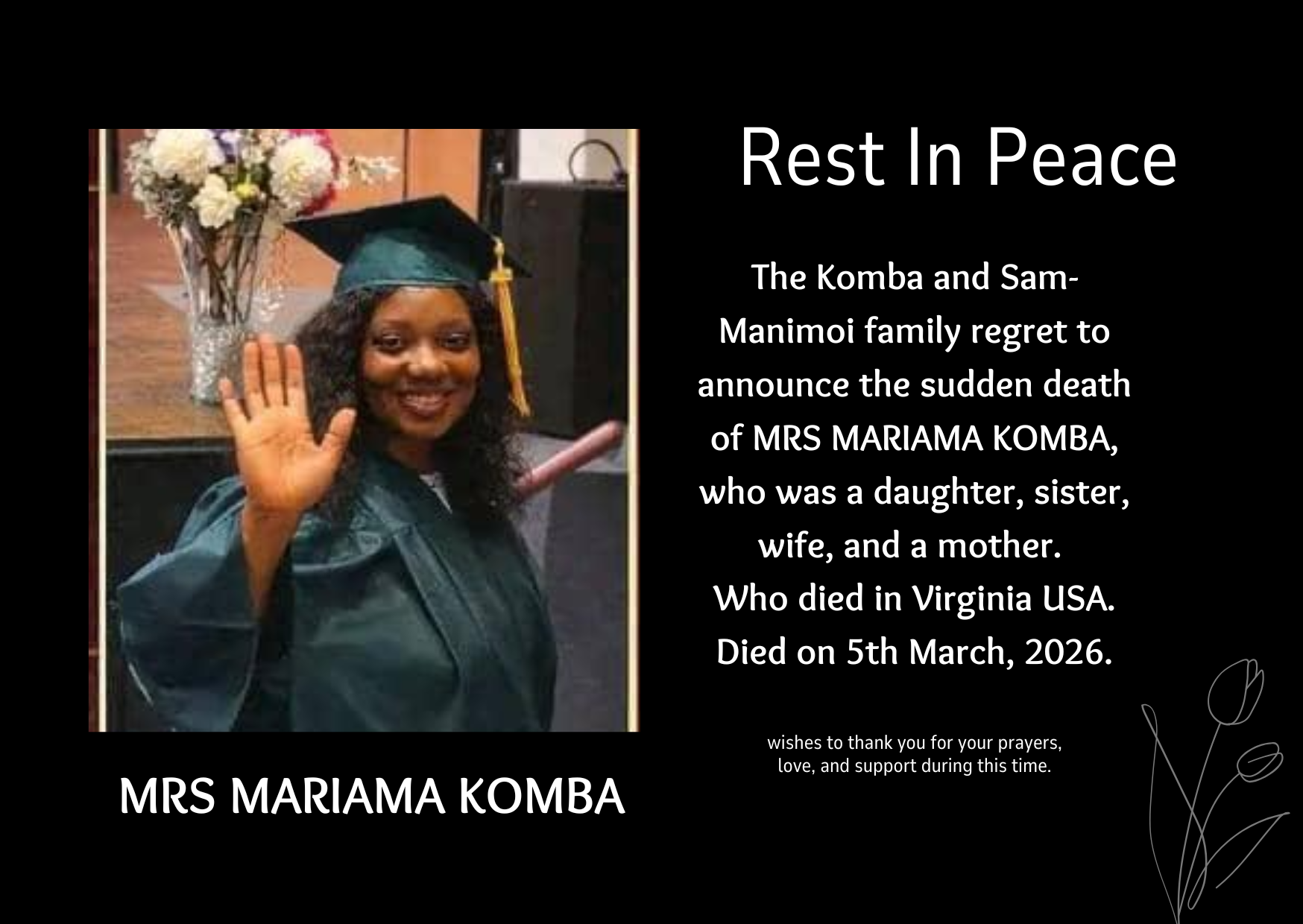 It is with profound sadness that we share the death of Mrs Aminata Tejan Kellah, who departed this life on 28th February, 2026.