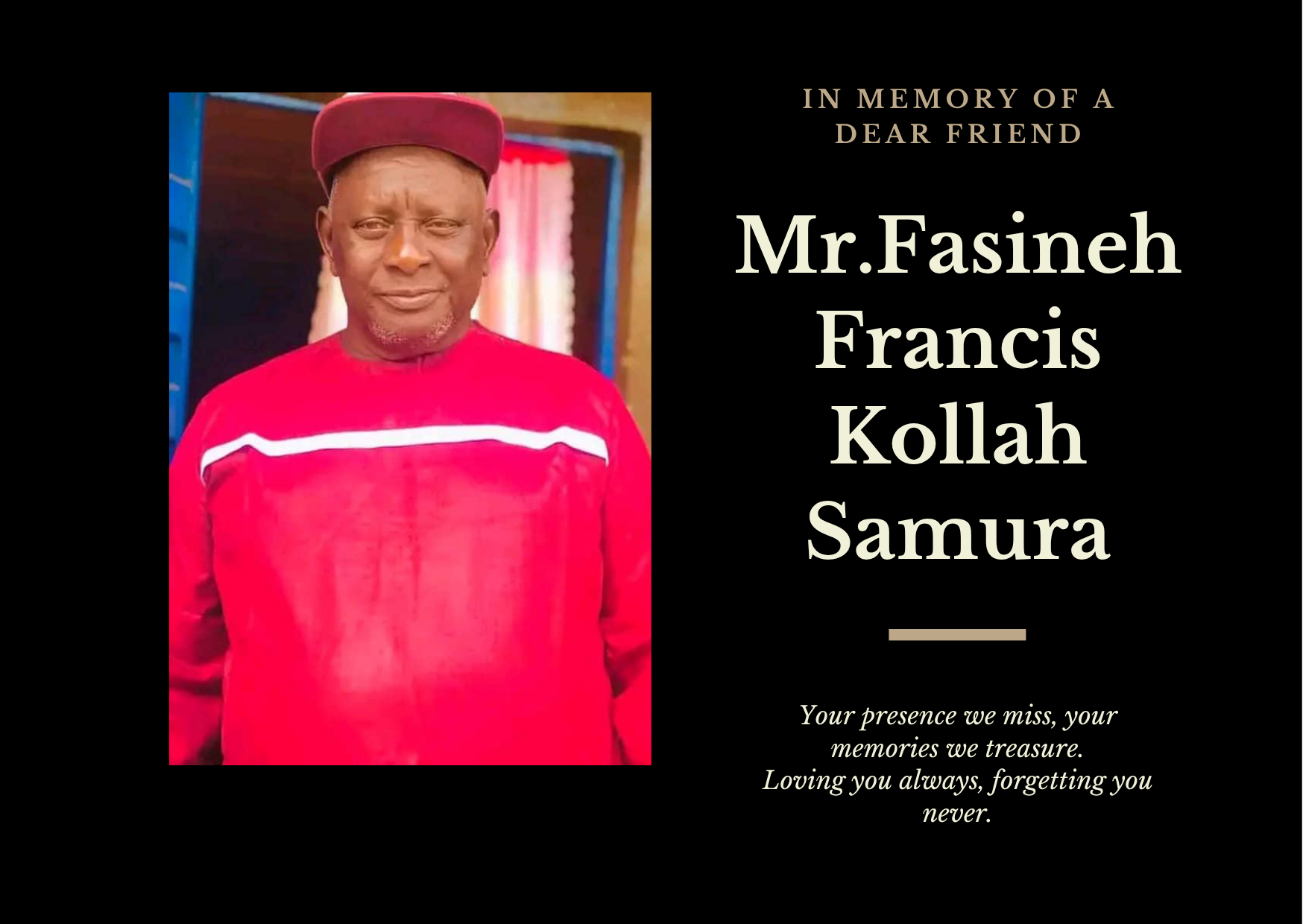 The family of the late Mr.Fasineh Francis Kollah Samura wishes to inform relatives, friends, and the general public that the burial rites of their beloved father/brother/uncle/grand-father and great-grand father who died on 12th March,2026 will take place as follows: