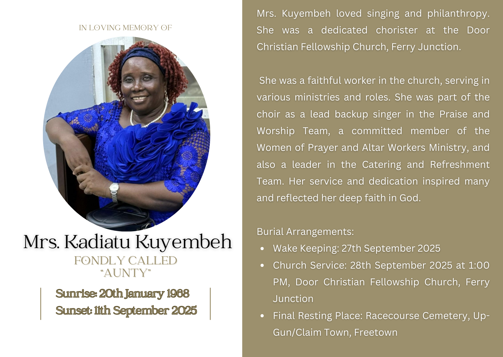 In Loving Memory of Mrs. Kadiatu Kuyembeh (“Aunty”)