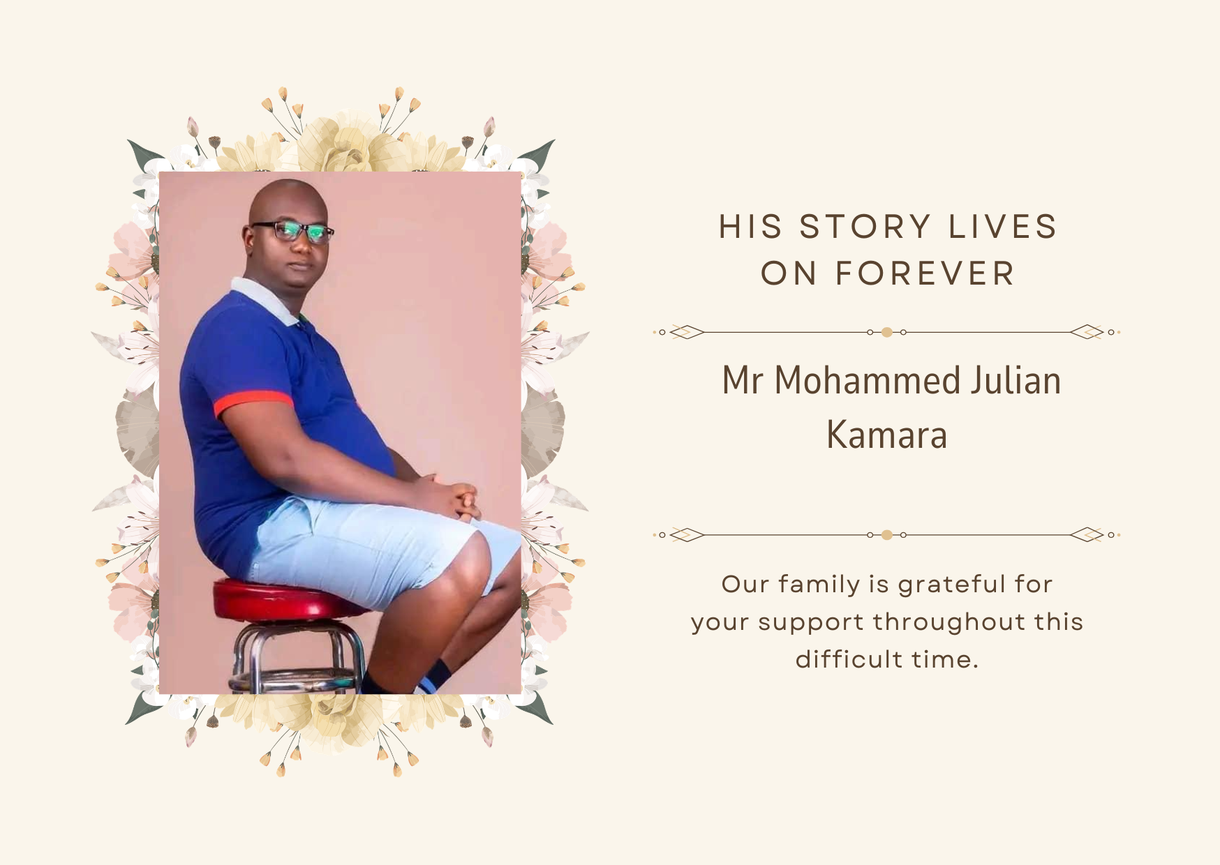 The death is announced of Mr Mohammed Julian Kamara(Medo), who passed away on 24th February, 2026.