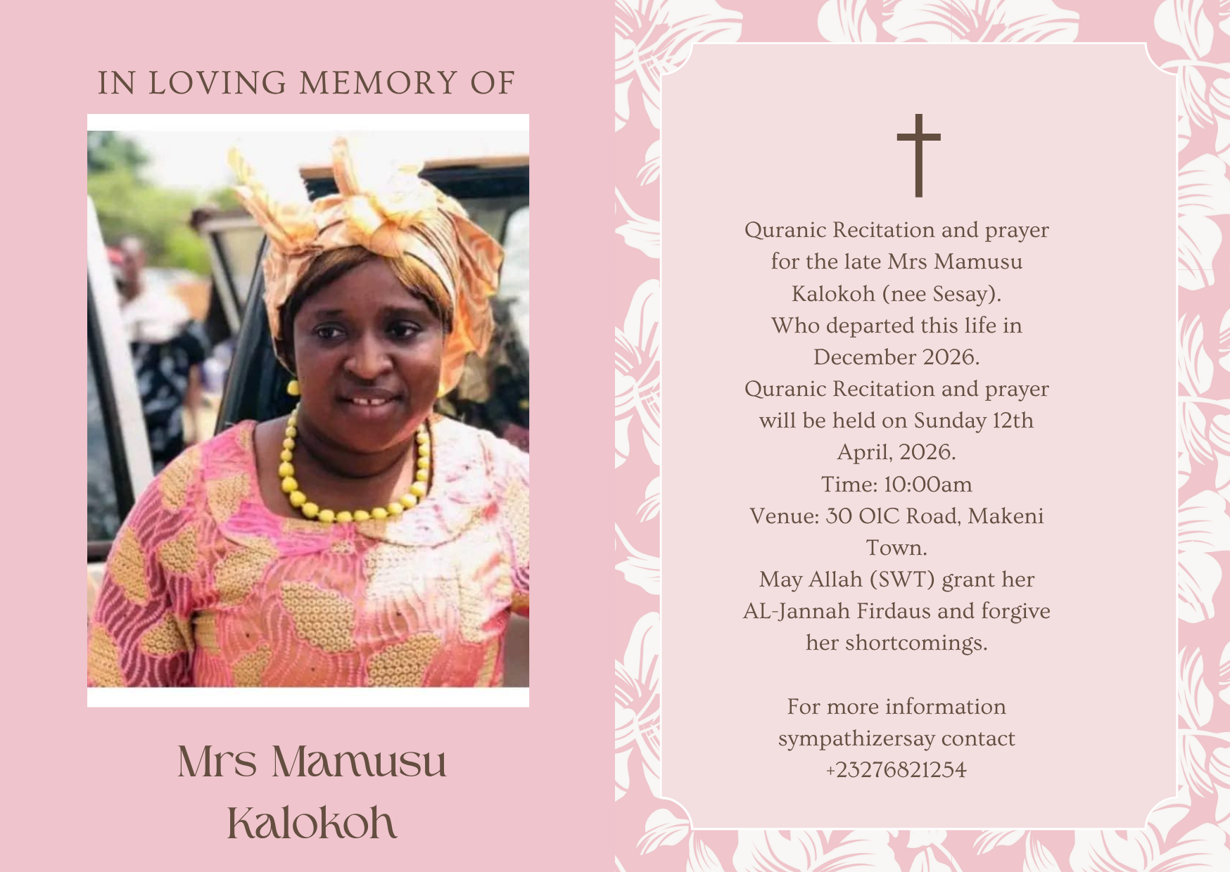 Quranic Recitation and prayer for the late Mrs Mamusu Kalokoh (nee Sesay).