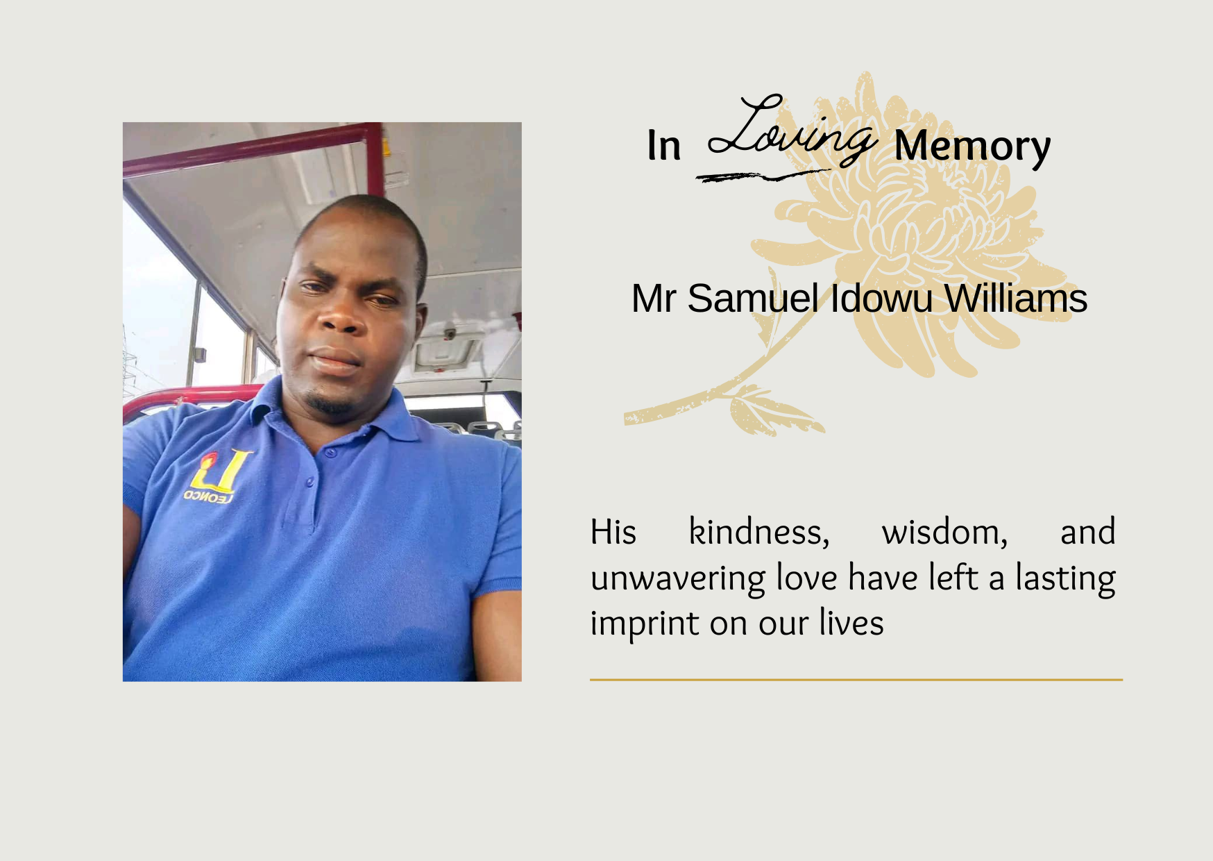 The death is announced of our beloved Husband, Father, Brother, Uncle and Friend the late Mr Samuel Idowu Williams, who passed away at the 34 Military Hospital Wilberforce Freetown.