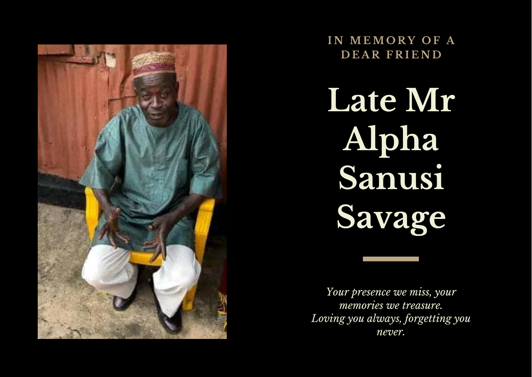 He’s survived by his family at home and abroad, and the entire Fourah Bay, Fullah Town community.