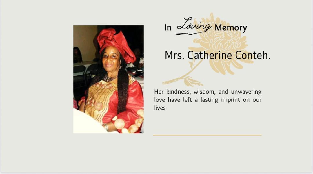 We regret to announce the sad news of the passing of Mrs. Catherine Conteh.
