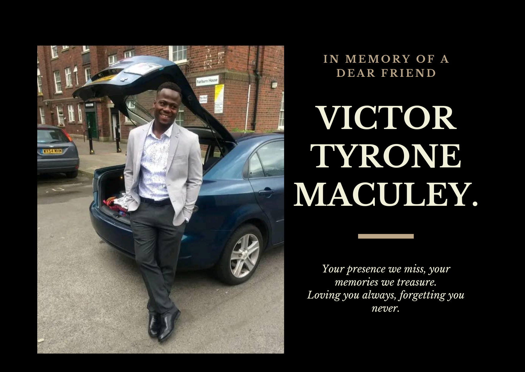 The Maculey family announces the death of their beloved son VICTOR TYRONE MACULEY.
