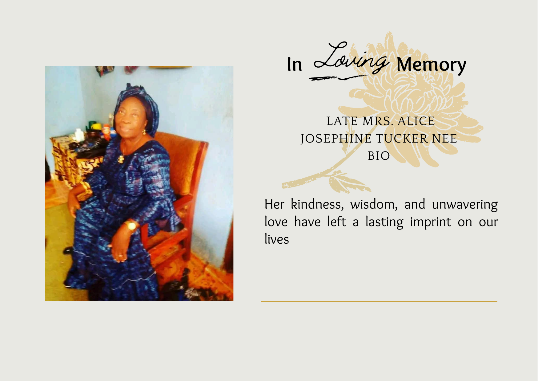 FUNERAL ARRANGEMENTS FOR THE LATE MRS. ALICE JOSEPHINE TUCKER NEE BIO.