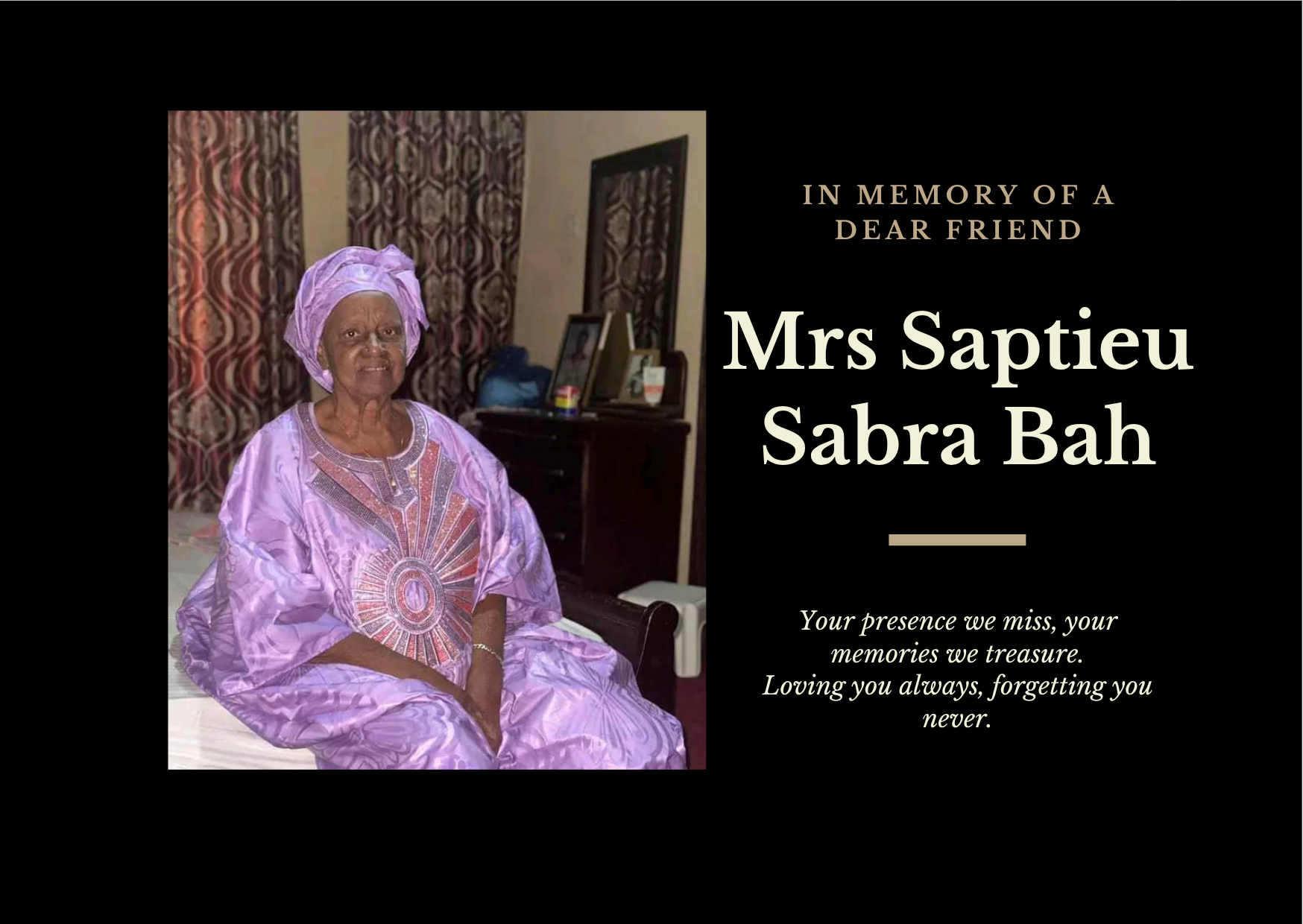Inna lilahi wa inna lilahi rajihun. The death is reported of Mrs Saptieu Sabra Bah of 25c Low-cost housing, Kissy. She’s survived by her children, sisters, grandchildren and other families at home and abroad.