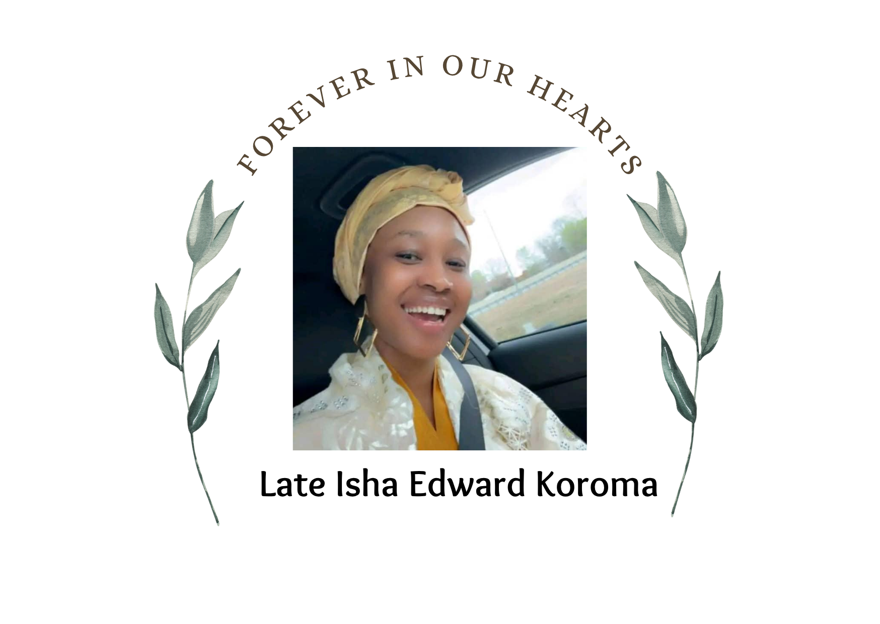 Isha is survived by her loving parents, Mr. Edward Basie Koroma and Mrs. Haja Nannah Koroma (née Bangura). She leaves behind her siblings, Memunatu Edward Koroma, Haja Mariama Danky Edward Koroma, and Sheick Ahmid Edward Koroma. She will be deeply missed by her grandmothers, Mama Fatmata Fullah, Mama Danky Fullah, and Mama Menunatu Turay. Isha is also survived by her uncles and aunties: Mr. John Bismark Koroma Mabinty Bangura, Fatmata Koroma, Hawa Fullah, Safie Koroma, Wulamatu Koroma…