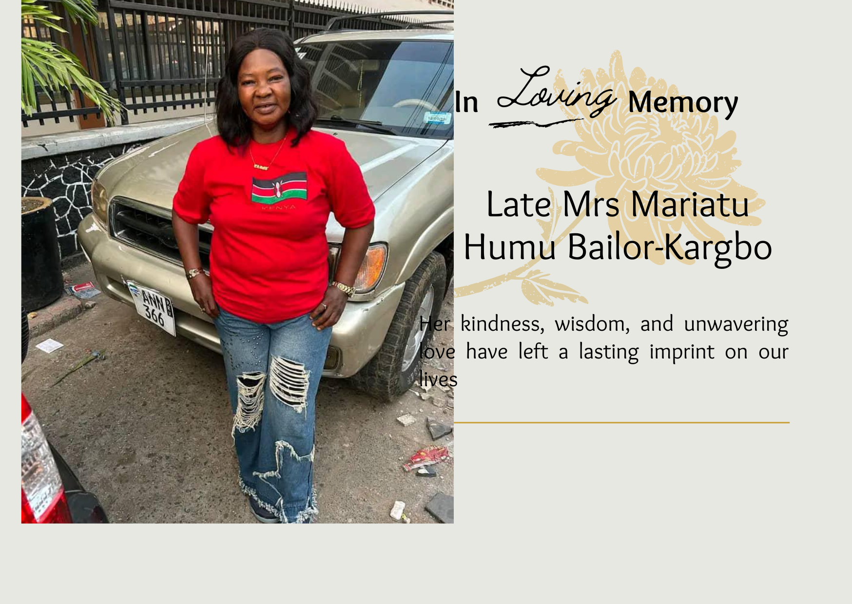 The death is reported of Mrs Mariatu Humu Bailor-Kargbo, commonly called Nurse Bailor