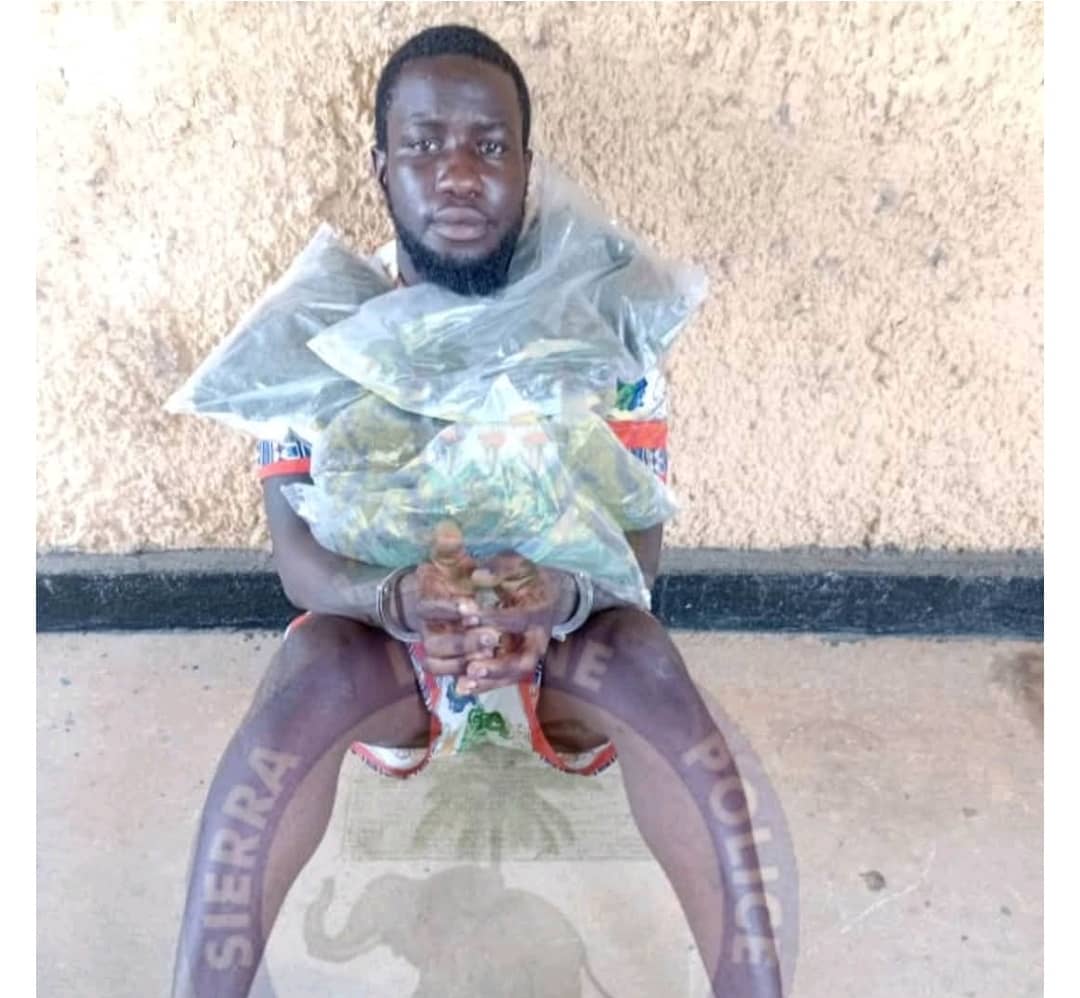 The individual, identified as Santigie Bangura, also known as Santana, resides at 23 Charles Street, Centre 2, Freetown. He was found in possession of five and a half kilograms of dried leaves believed to be Kush, hidden beneath the seat of a Toyota CHR with registration number AWB 358. The vehicle was stopped while en route to Kenema.