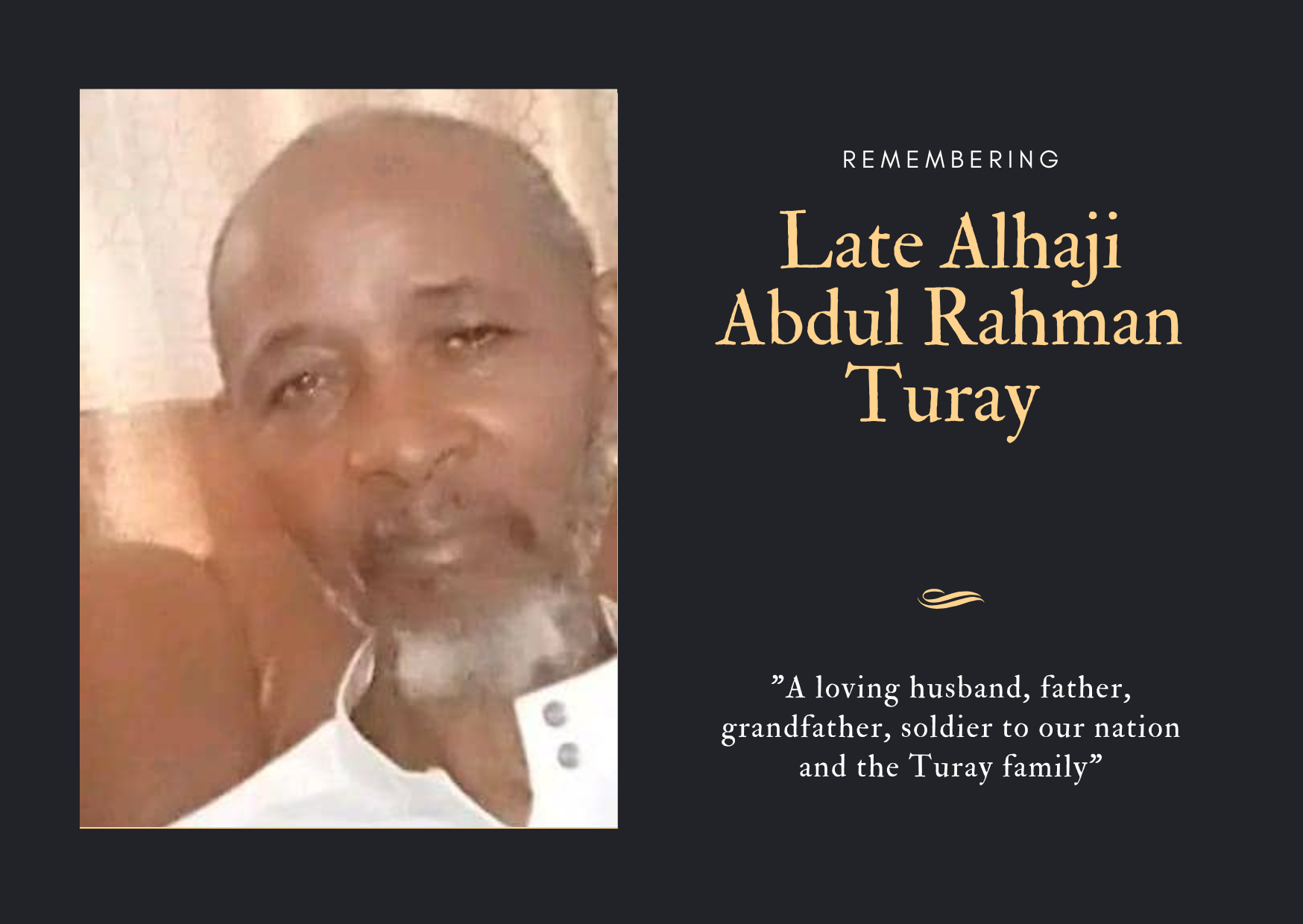 Late Pa Alhaji Abdul Rahman Turay peacefully departed this life and has left behind a legacy of love, humility, and kindness.