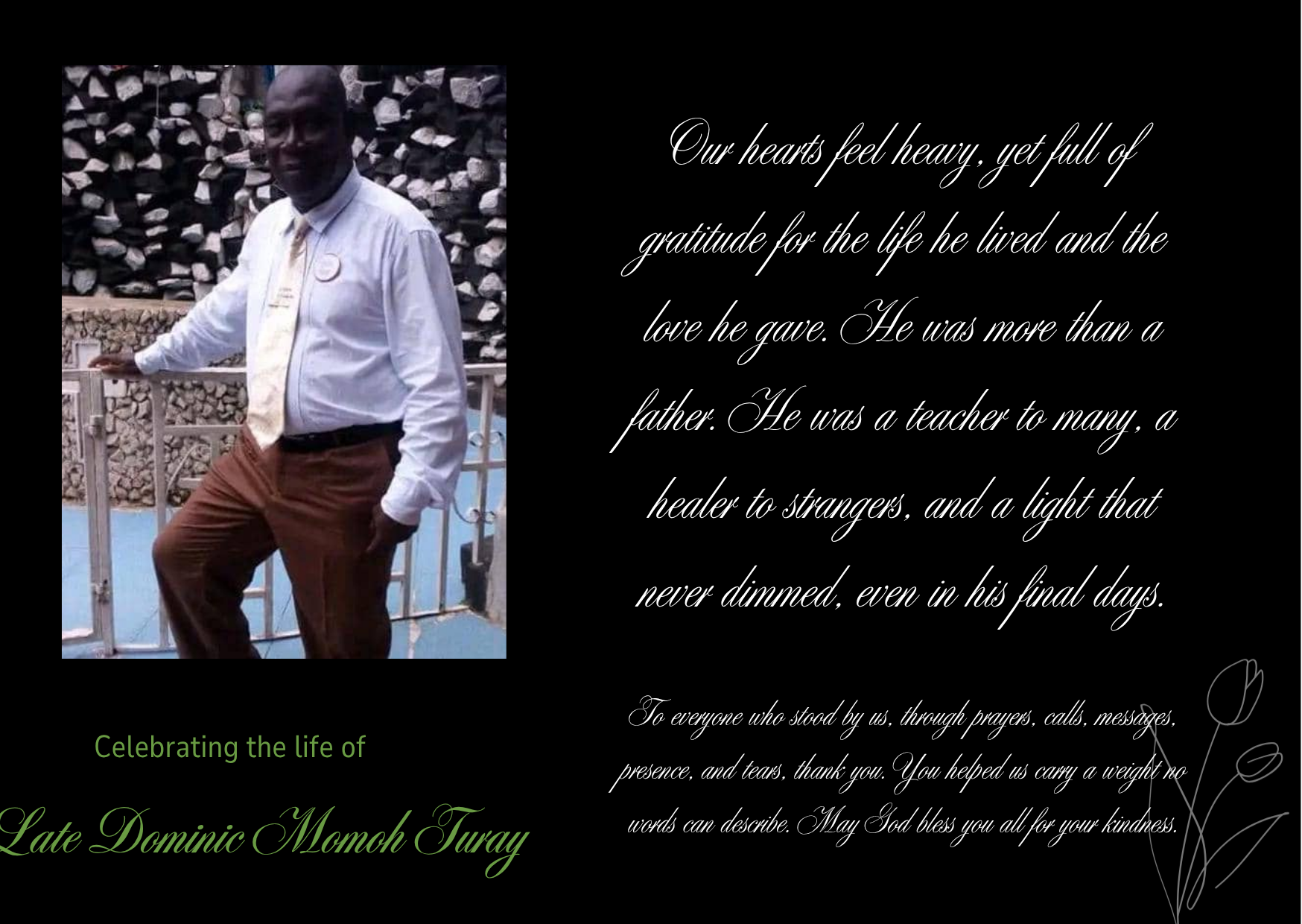 To everyone who stood by us, through prayers, calls, messages, presence, and tears, thank you. You helped us carry a weight no words can describe. May God bless you all for your kindness.