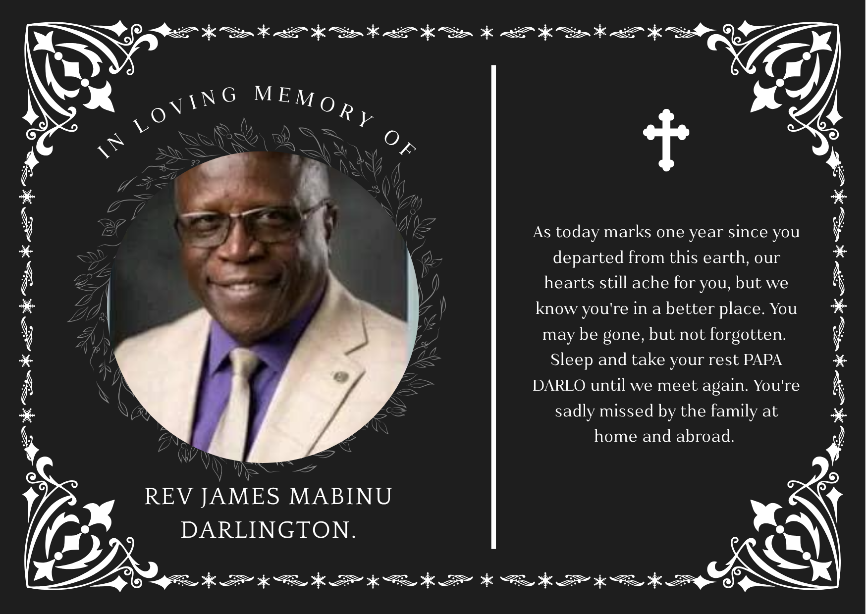 In Loving Memory of Rev James Mabinu Darlington.