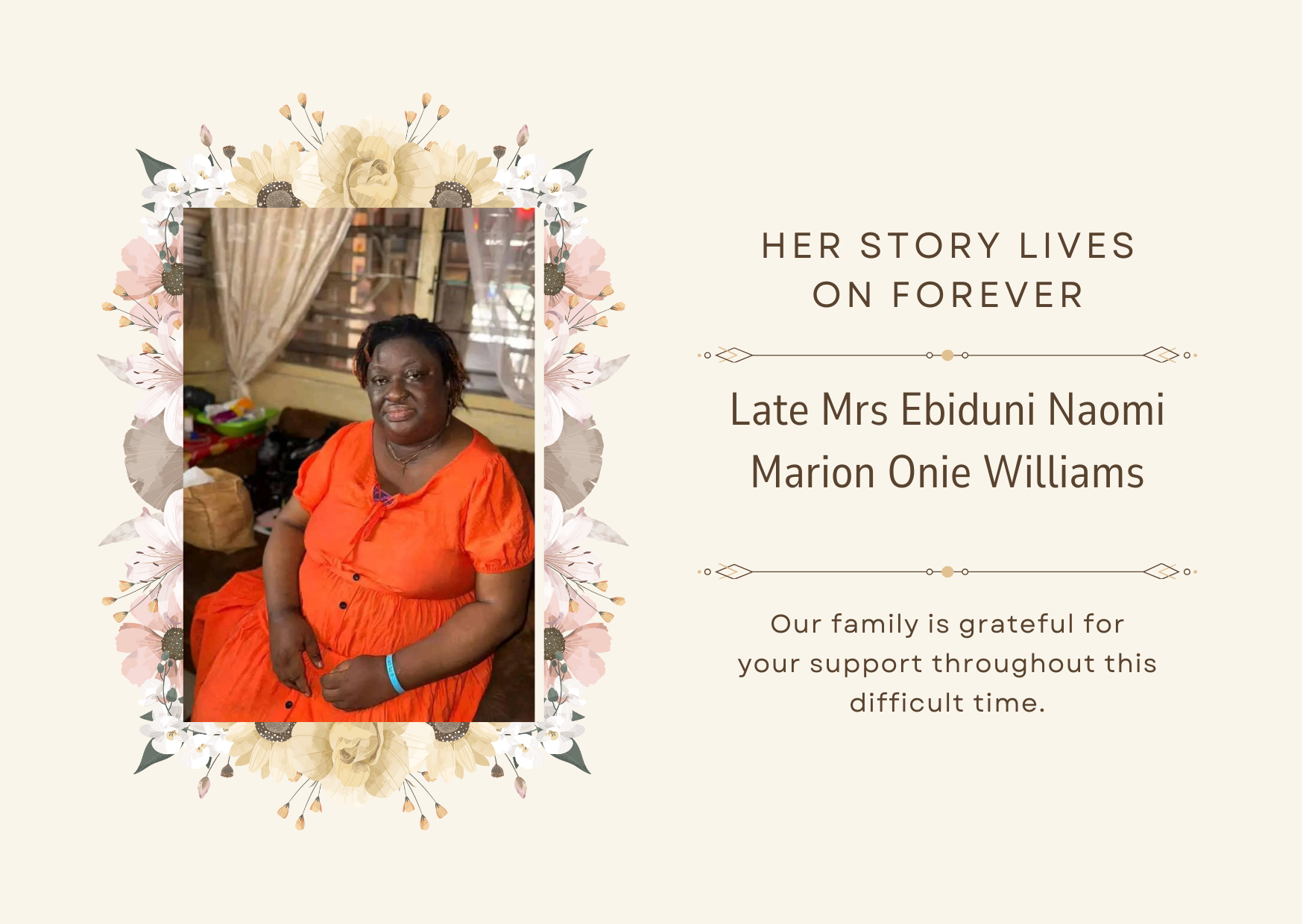 Funeral Arrangements for The Late Mrs Ebiduni Naomi Marion Onie Williams