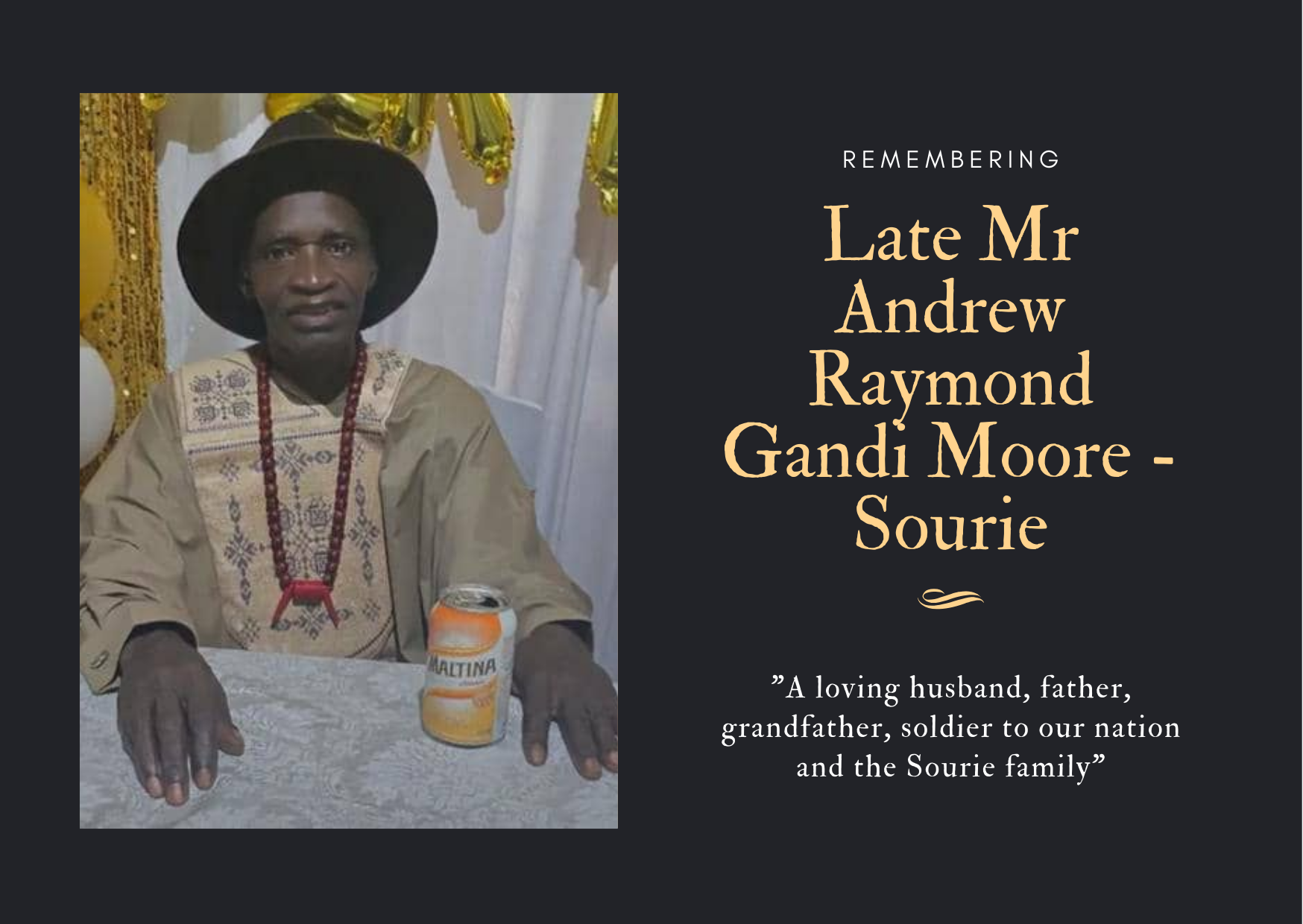 In Loving Memory of Mr Andrew Raymond Gandi Moore -Sourie